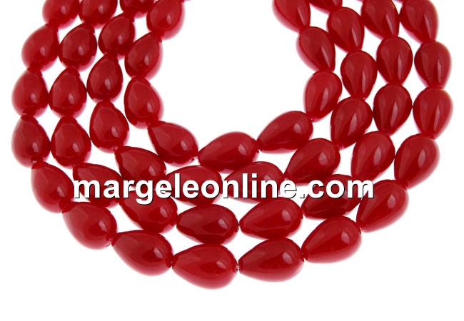 Perle tip Mallorca, picatura, rosu, 15x10mm