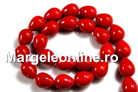 Perle tip Mallorca, forma: picatura, culoare: rosu intens, dimensiune: 20x14.5mm. Pretul se refera la 1 sirag fara incuietaore de 40cm.