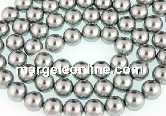 Perle tip Mallorca, forma: rotund, culoare: argintiu, dimensiune: 6mm. Pretul se refera la 1 sirag de 40 cm cu cca 68-70 elemente.