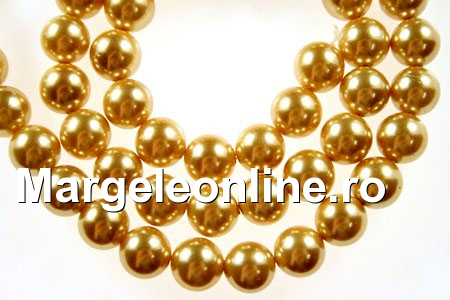 Perle tip Mallorca, forma: rotund, culoare: auriu, dimensiune: 10mm. Pretul se refera la 1 sirag de 40cm.