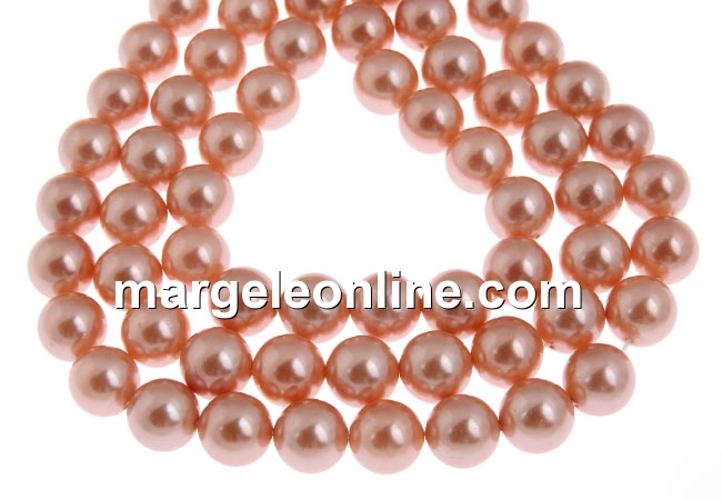 Perle tip Mallorca din cristal acoperite cu straturi de sidef natural, forma: rotund, dimensiune: 10mm. Pretul se refera la 1 sirag fara incuietoare de 40cm.