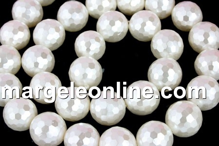 Perle tip Mallorca, forma: rotund fatetat, culoare: alb perlat, dimensiune: 14mm. Pretul se refera la 1 sirag cu 29 margele.