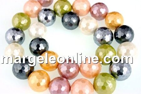 Perle tip Mallorca, forma: rotund fatetat, culoare: mix multicolor, dimensiune: 14mm. Pretul se refera la 1 sirag de 40cm..