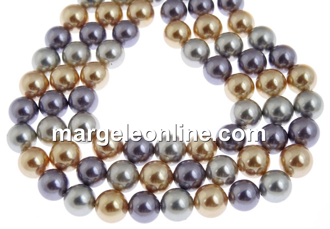 Perle tip Mallorca din cristal acoperite cu straturi de sidef natural, forma: rotund, dimensiune: 10mm. Pretul se refera la 1 sirag fara incuietoare de 40cm.