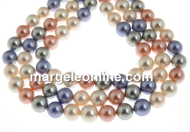 Perle tip Mallorca din cristal acoperite cu straturi de sidef natural, forma: rotund, dimensiune: 10mm. Pretul se refera la 1 sirag fara incuietoare de 40cm.