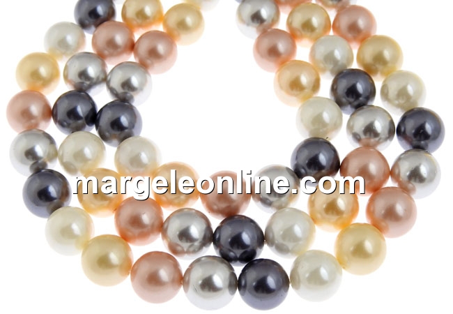 Perle tip Mallorca din cristal acoperite cu straturi de sidef natural, forma: rotund, dimensiune: 12mm. Pretul se refera la 1 sirag fara incuietoare de 40cm.