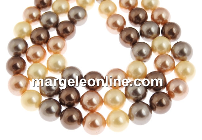 Perle tip Mallorca din cristal acoperite cu straturi de sidef natural, forma: rotund, dimensiune: 12mm. Pretul se refera la 1 sirag fara incuietoare de 40cm.
