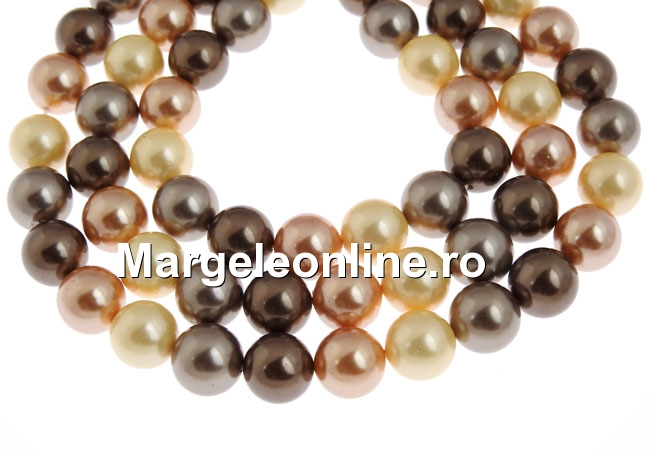 Perle tip Mallorca din cristal acoperite cu straturi de sidef natural, forma: rotund, dimensiune: 12mm. Pretul se refera la 1 sirag fara incuietoare de 40cm.