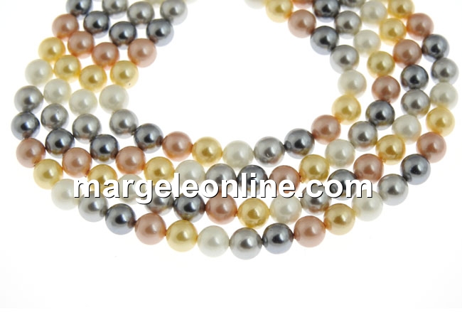 Perle tip Mallorca din cristal acoperite cu straturi de sidef natural, forma: rotund, dimensiune: 6mm. Pretul se refera la 1 sirag fara incuietoare de 40cm.