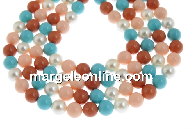 Perle tip Mallorca din cristal acoperite cu straturi de sidef natural, forma: rotund, dimensiune: 8mm. Pretul se refera la 1 sirag fara incuietoare de 40cm.