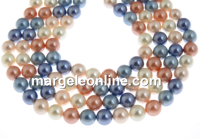 Perle tip Mallorca din cristal acoperite cu straturi de sidef natural, forma: rotund, dimensiune: 8mm. Pretul se refera la 1 sirag fara incuietoare de 40cm.