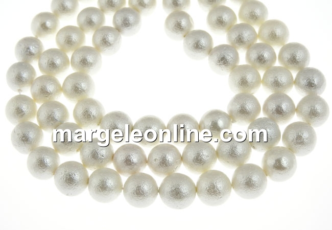 Perle tip Mallorca stardust, rotund, alb, 12mm