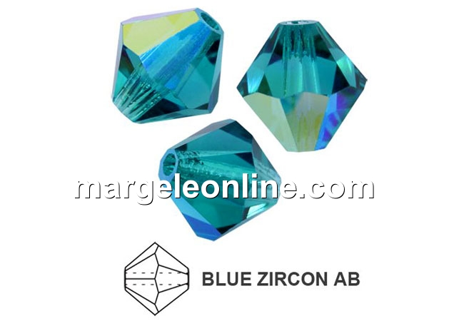 Preciosa, margele bicone, blue zircon AB, 4mm - x40