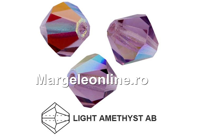 Preciosa, margele bicone, light amethyst AB, 4mm - x40