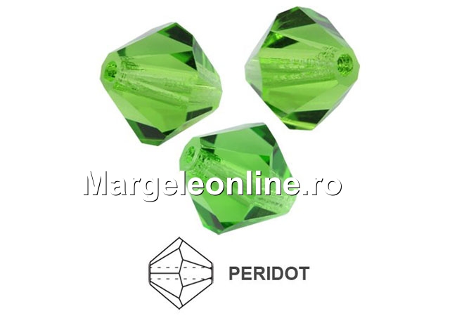 Preciosa, margele bicone, peridot, 4mm - x40