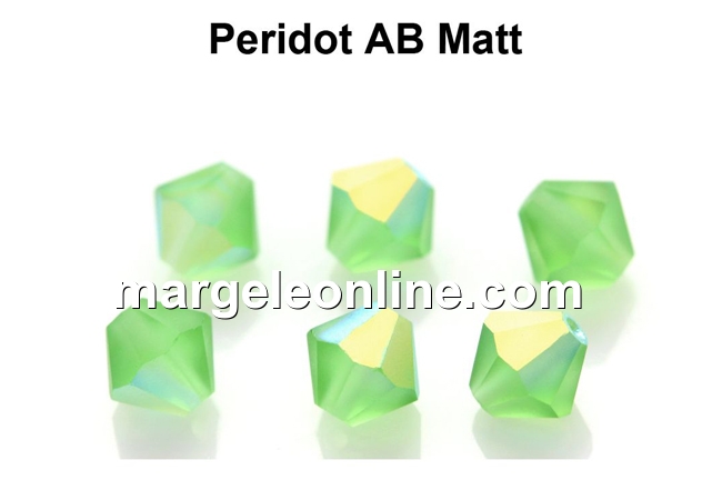 Preciosa, margele bicone, peridot aurore boreale MAT, 4mm - x40
