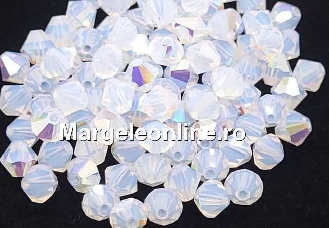 Preciosa, margele bicone, white opal glitter, 4mm - x40