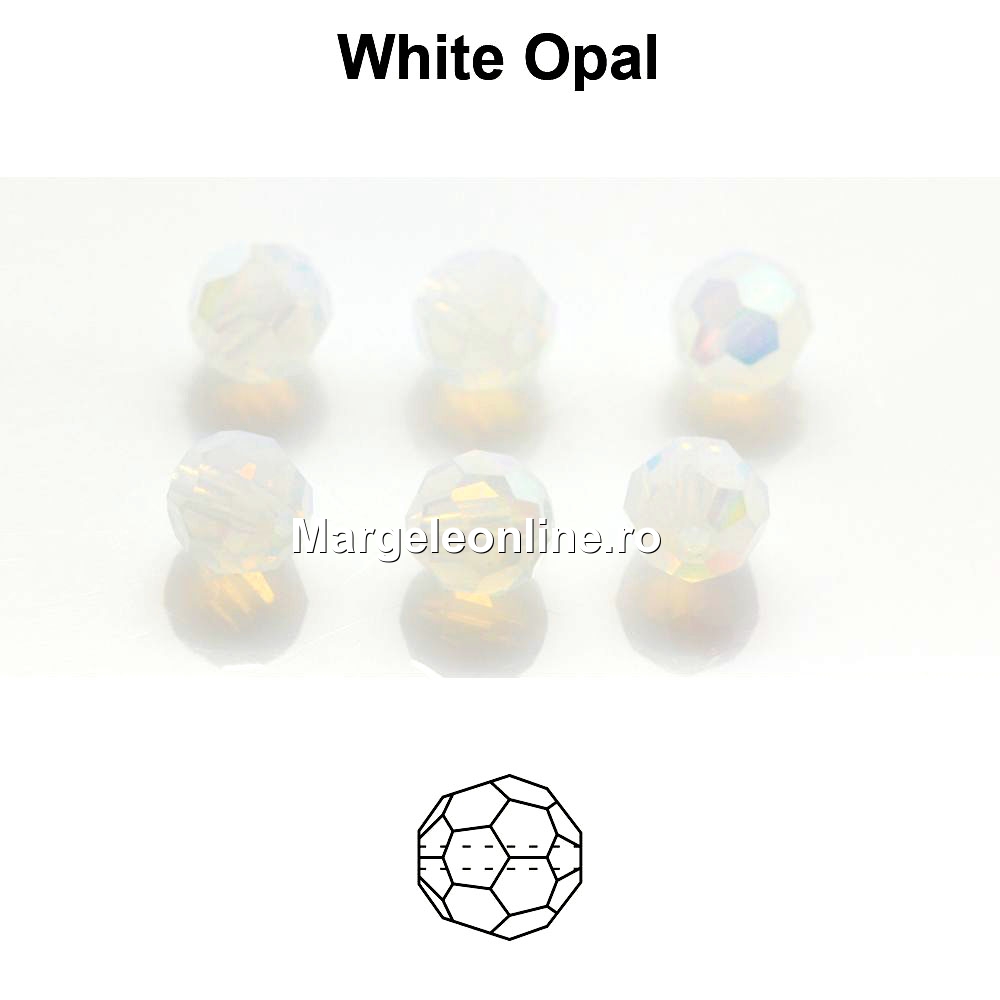 Preciosa, margele, rotund fatetat, white opal, 4mm - x10