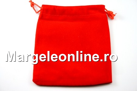 Saculet catifea, rosu, dimensiune totala: 9x7cm, sistem de inchidere: snur asortat. Pretul se refera la 5 saculeti.