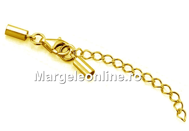 Set terminatie coliere, bratari, argint 925 placat cu aur, marcat, dimensiune totala: 29mm, interior: 2mm, prevazut cu lantisor extensie de 40mm. Pretul se refera la 1 set conform imagine.