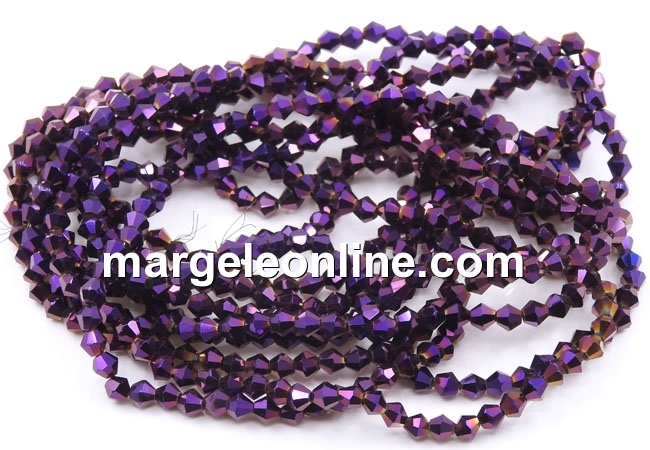 Sirag margele cristal, biconic fatetat, iridescent purple, 4mm