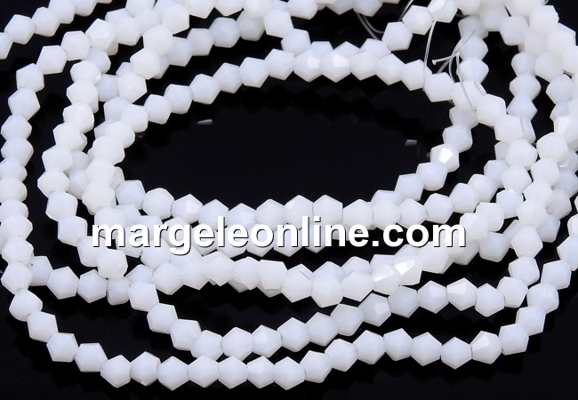 Sirag margele cristal, biconic fatetat, white alabaster, 4mm
