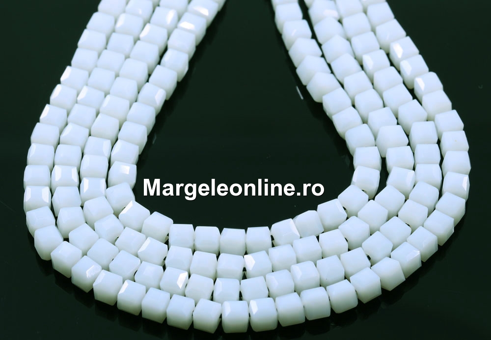 Sirag margele cristal, cub, alb alabastru, dimensiune: 4x4mm. Pretul este pentru 1 sirag de cca 42-43 cm.