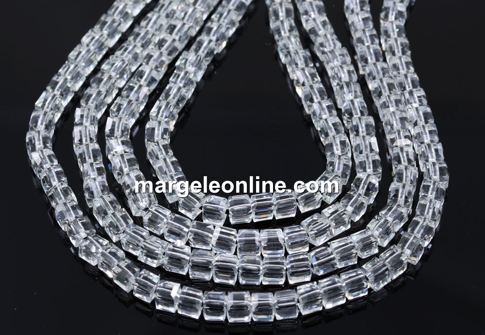 Sirag margele cristal, cub, cristal transparent, 4mm