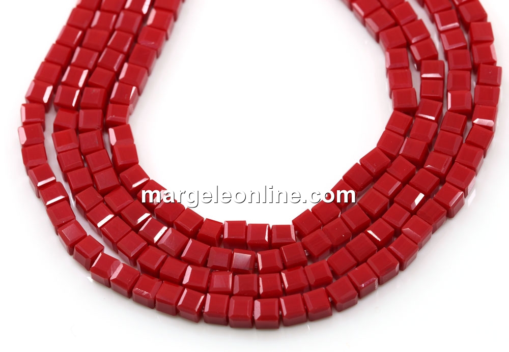 Sirag margele cristal, cub, rosu, dimensiune: 3x3mm. Pretul este pentru 1 sirag de cca 28 cm.