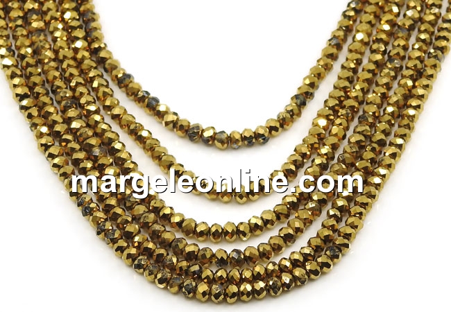 Sirag margele cristal, rondele fatetate, auriu, 3.5x2.5mm