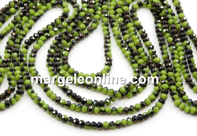 Sirag margele cristal, rondele fatetate, degrade verde negru, 3x2.2mm