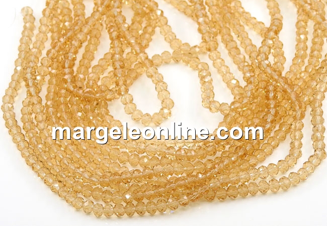 Sirag margele cristal, rondele fatetate, golden beige, 4x3mm