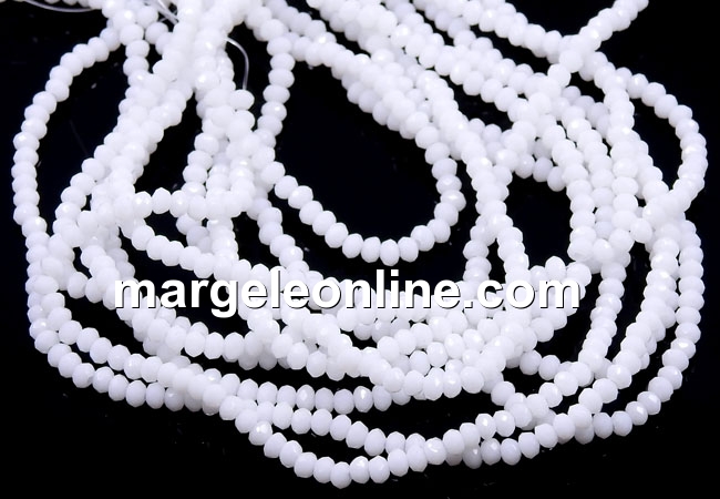 Sirag margele cristal, rondele fatetate, white alabaster, 3x2mm