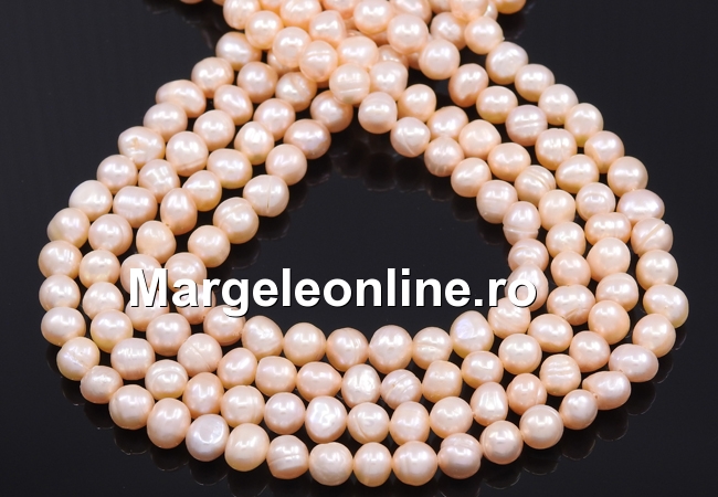 Perle de cultura naturale, marime: 5.5-6mm, aspect: perlat lucios. Pretul se refera la 1 sirag de cca 35cm.