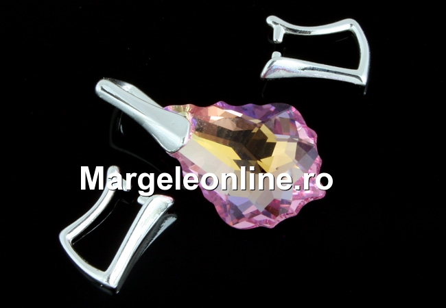 Sistem prindere pandantiv, argint 925 placat cu rodiu marcat, dimensiune totala: 9x7x3mm. Pretul este pentru 1 bucata. Produsul din imagine este cu titlu de prezentare si poate fi achizitionat din categoria Swarovski elements .