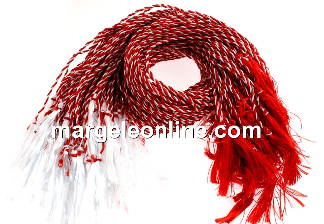 Snur martisor, culoare: alb si rosu, grosime: 2mm, lungime: 58cm. Pretul se refera la 20 bucati.