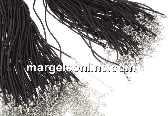 Snur piele, grosime: 2.5mm, culoare: maro, lungime:44 cm, accesorii de inchidere si prelungire. Pretul se refera la 3 bucati.