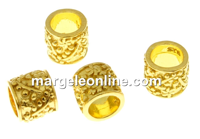 Spacer decor tub, din argint 925 placat cu aur, marcat, dimensiune: 6x7mm, interior: 4.5mm. Pretul este pentru 1 bucata.