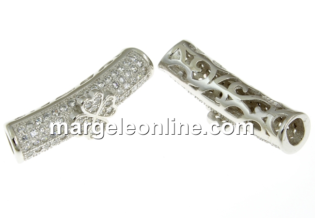 Spacer decor cu cristale, din argint 925 placat cu rodiu, marcat, dimensiune: 23x5.5mm, interior: 3.5mm. Pretul este pentru 1 bucata.