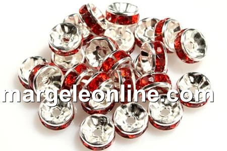 Spacer rhinestone, culoare: rosu, dimensiune: 8x3.5mm. Pretul se refera la 10 bucati.