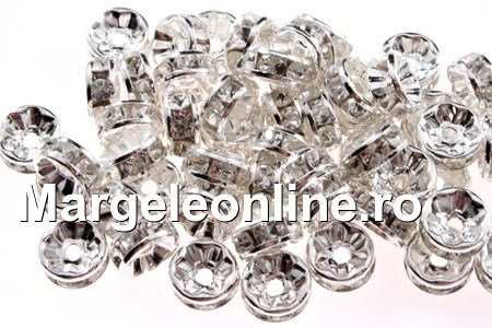 Spacer rhinestone, culoare: transparent cu irizatii, dimensiune: 8mm. Pretul se refera la 10 bucati.