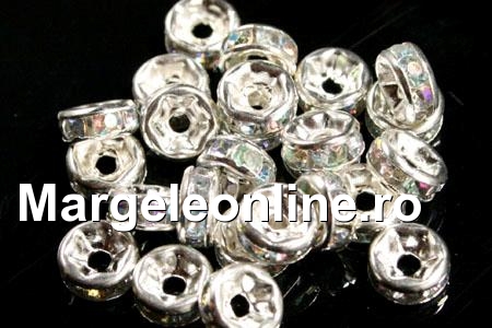Spacer rhinestone, culoare: transparent cu irizatii AB, dimensiune: 8mm. Pretul se refera la 10 bucati.