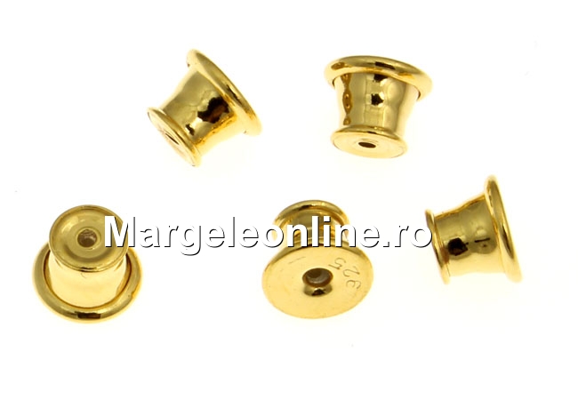 Stopper pentru cercei, cu interior din silicon pentru o fixare perfecta, argint 925 placat cu aur, marcat, dimensiune 5x4mm. Pretul este pentru 2 bucati.