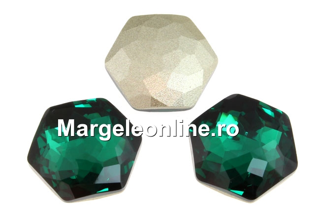 Swarovski 4683, fantasy hexagon, emerald, 14mm - x1