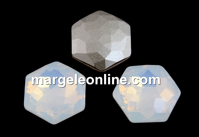 Swarovski 4683, fantasy hexagon, white opal, 8mm - x2