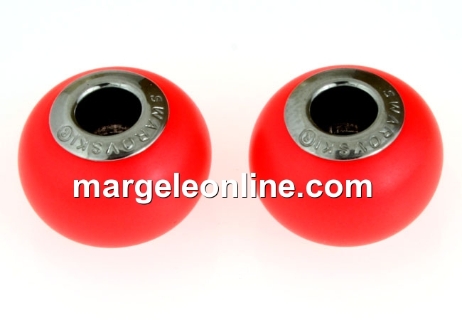 Swarovski, becharmed crystal neon red pearl, 14mm - x1