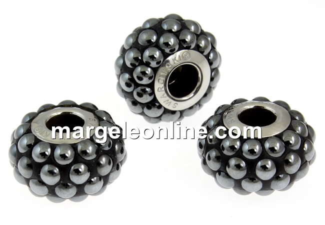 Swarovski, becharmed pave jet hematite, 15mm - x1