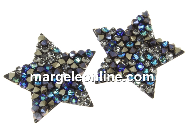 Element Swarovski fine rocks, cabochon, forma: fancy star, dimensiune: 22mm. Pretul este pentru 1 bucata. Poate fi perforat DOAR din spate spre fata cu un obiect ascutit si rotunjit de 1-1.5mm (gen un ac gros pentru cusut lana) incat cu accesoriile necesare sa transformati produsul in pandantiv sau cercei, baza din silicon fiind foarte elastica. Deci: trecand obiectul ascutit DOAR din spate spre fata si niciodata invers, din fata spre spate.