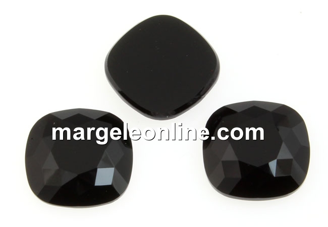 Swarovski, cabochon cushion, jet, 10mm - x2
