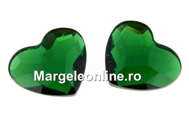 Swarovski, cabochon inima, dark moss green, 14mm - x1
